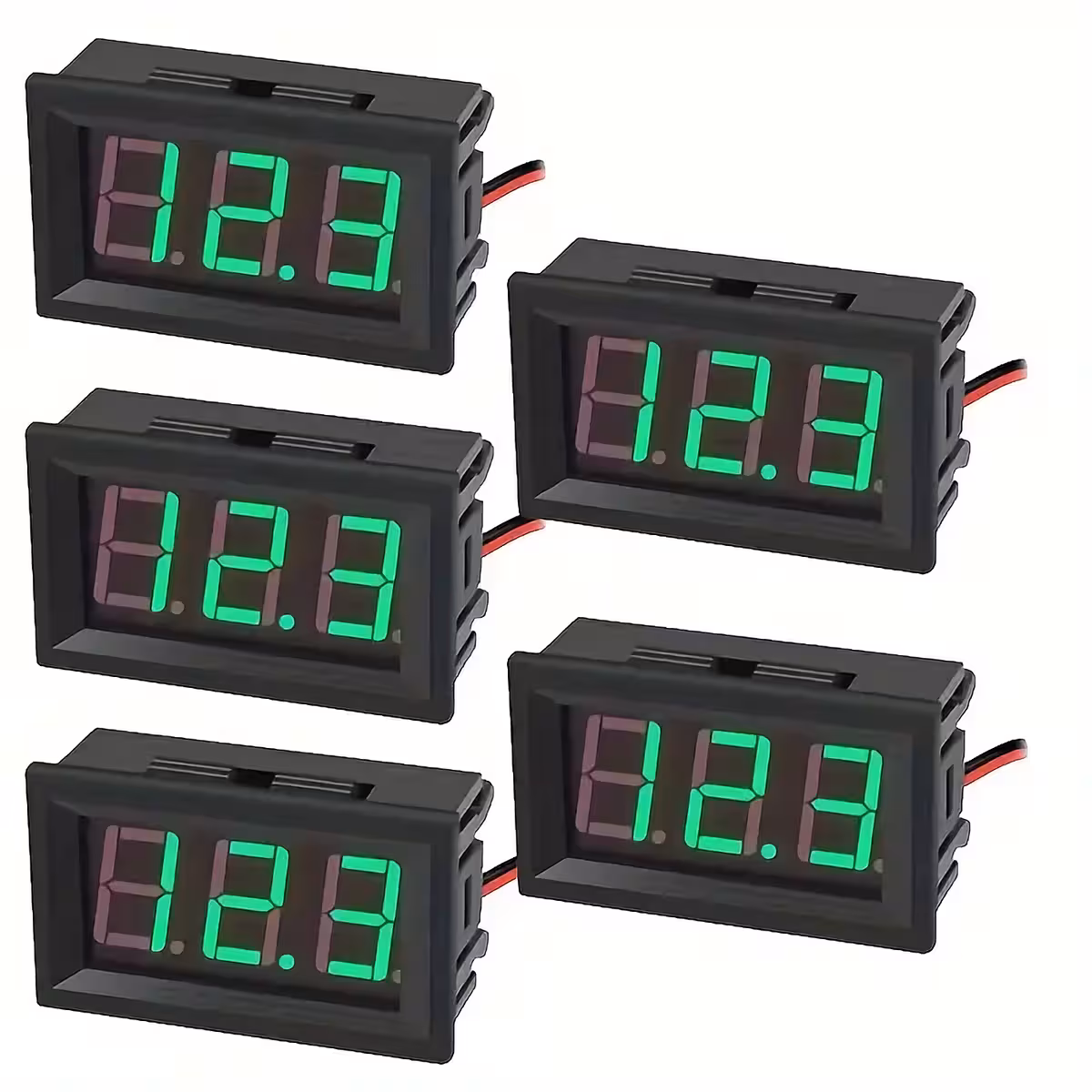 See komplekt sisaldab 5 tükki paneel-digitaalvoltmeetreid, mis sobivad ideaalselt alalisvoolu pinge mõõtmiseks laias vahemikus. Selge rohelise LED-ekraaniga ja toiteallikaga otse mõõdetavast pingest on need voltmeetrid ideaalsed auto-, päikesesüsteemide, DIY projektide ja elektroonika rakenduste jaoks.
