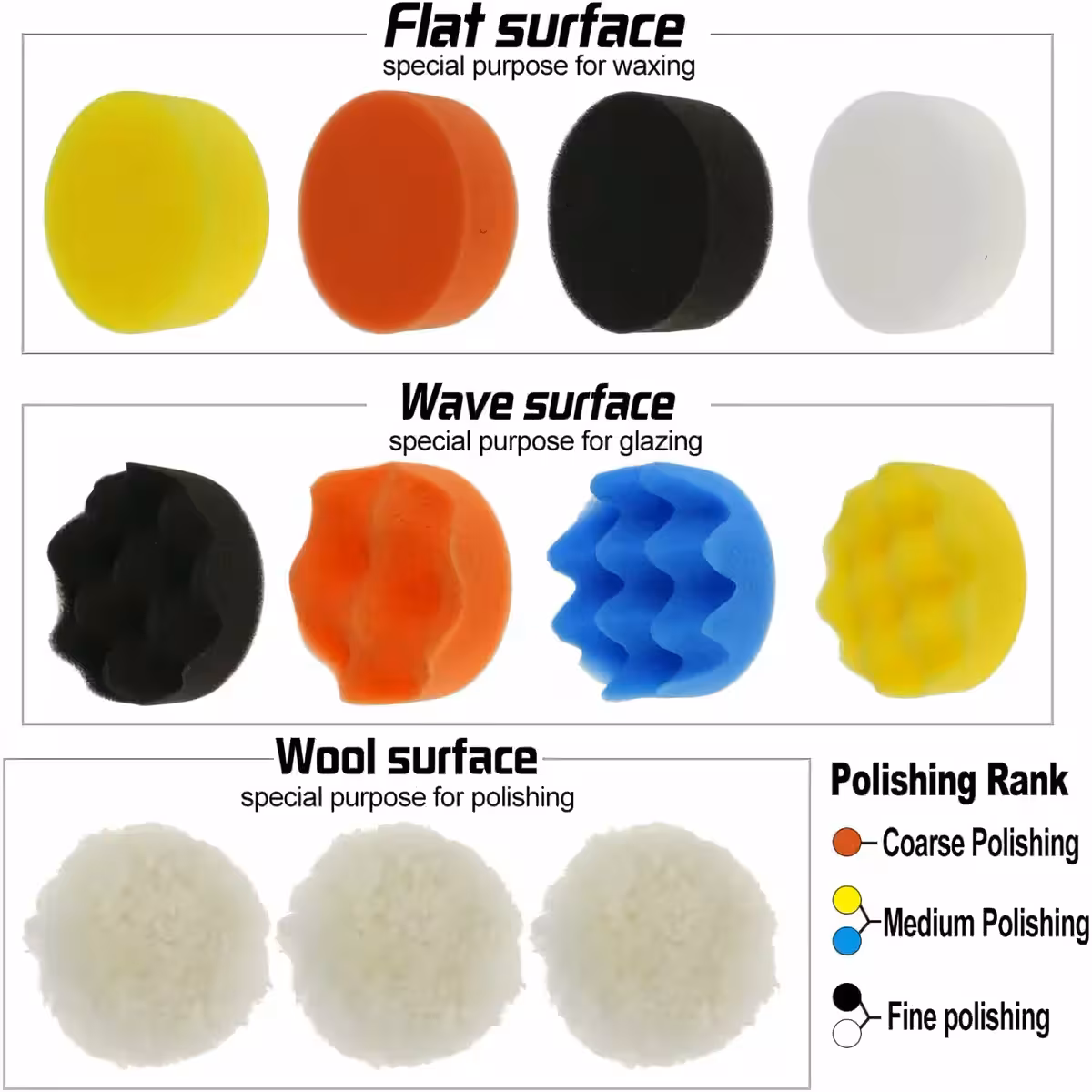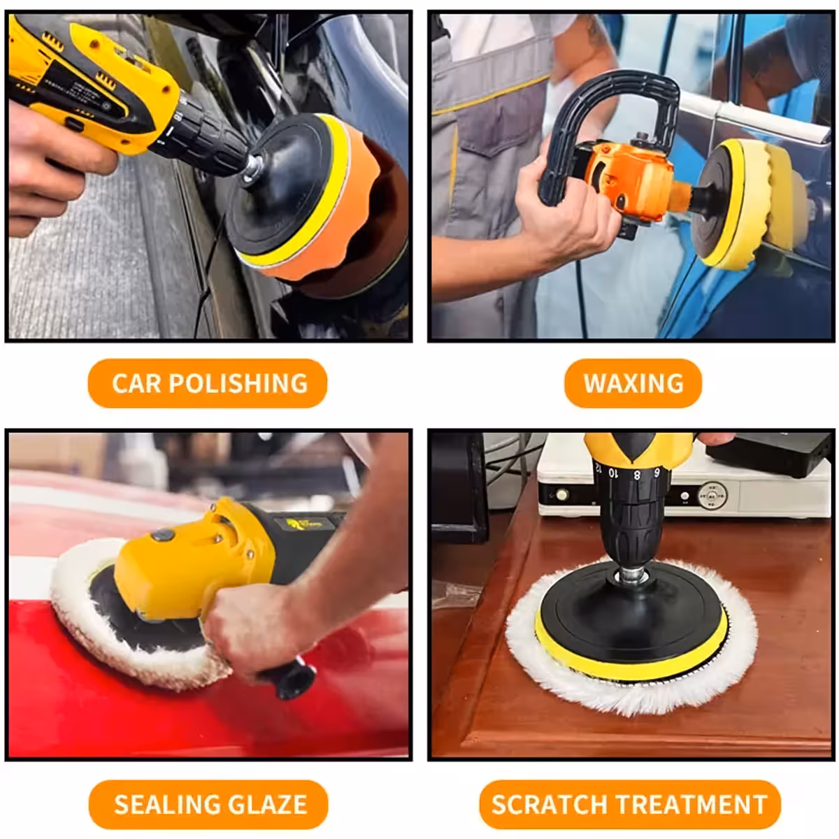 See täielik auto poleerimiskäsnade ja taldrikute komplekt on mõeldud värvipindade, nagu autokere, plast-, metall- või klaasesemed, poleerimiseks ja hooldamiseks. Seda saab kasutada mis tahes puuri või poleermasinaga, tänu 3 kaasasolevale adapterile.