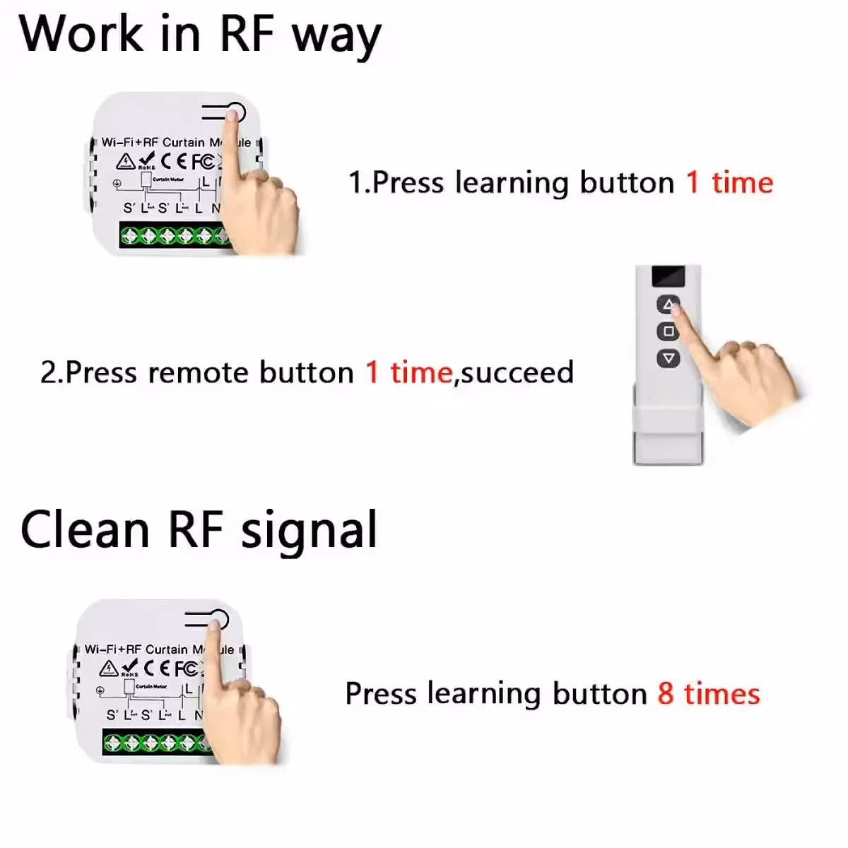 - 1 x WiFi + RF kontroller rulood, kardinad, draperiidid, varikatused jne.
