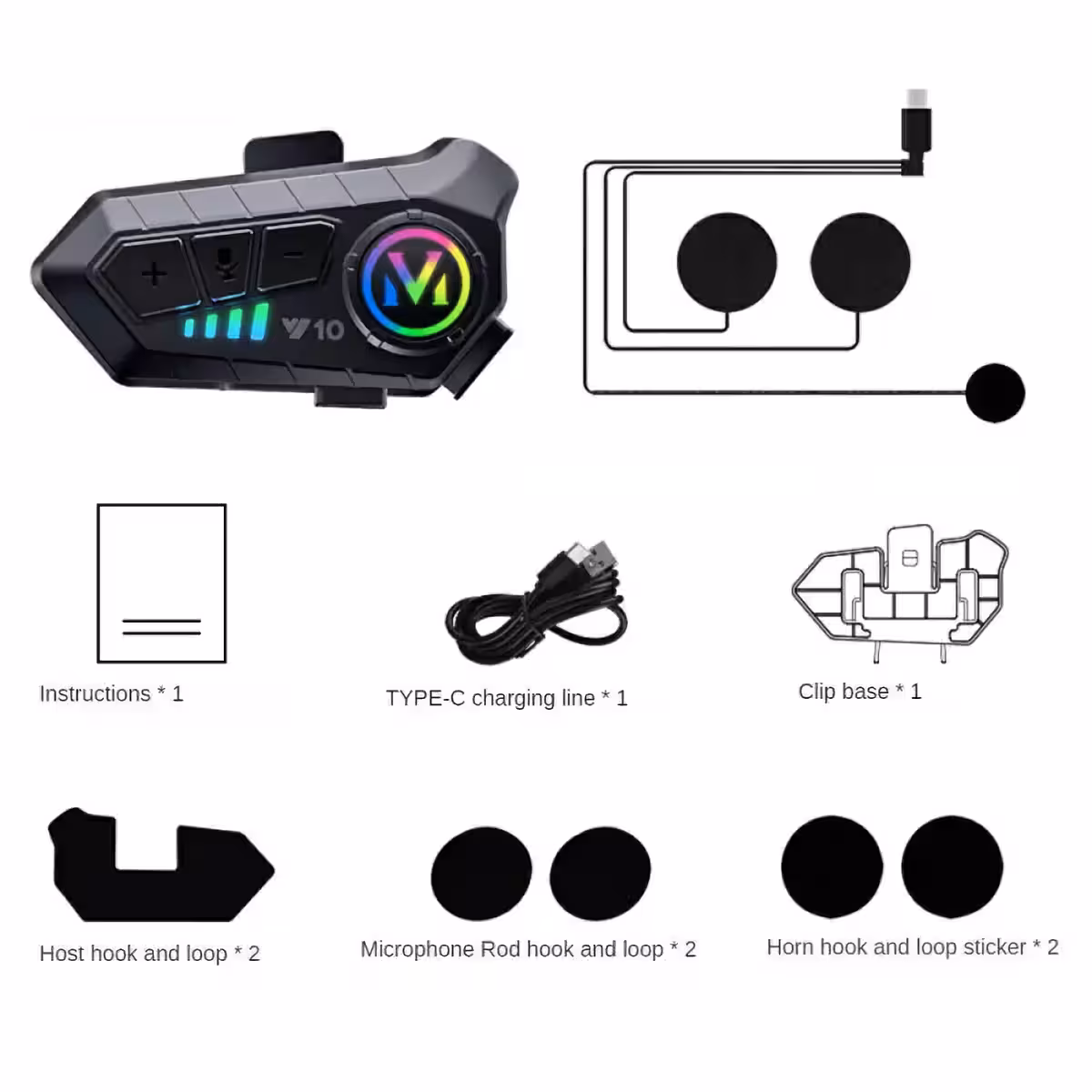 - 1 x Bluetooth kommunikatsioonisüsteem mootorratta kiivrile