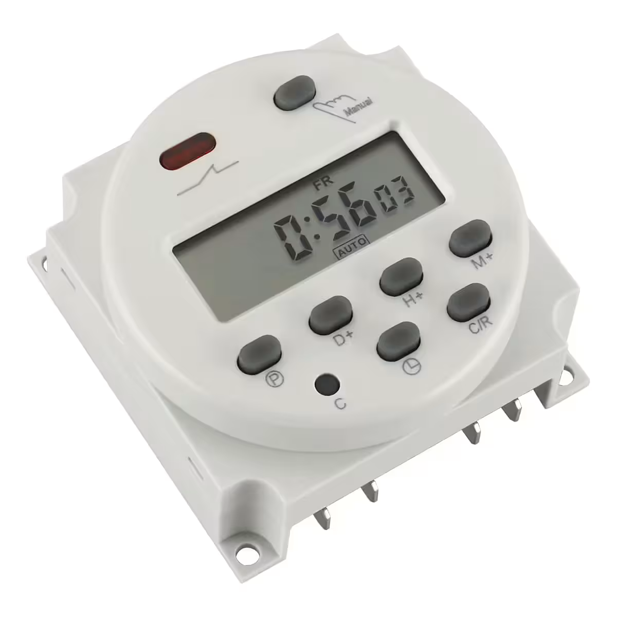 Digitaalne taimer on ehitatud kaasaegse CMOS-tehnoloogiaga, kasutades kõrge täpsusega kvartsiga mikrokontrollerit. Võimaldab täpset automaatset ajastamist igale elektriseadmele, minimaalse tsükliga 1 minut ning igapäevase või nädalase programmeerimisega.