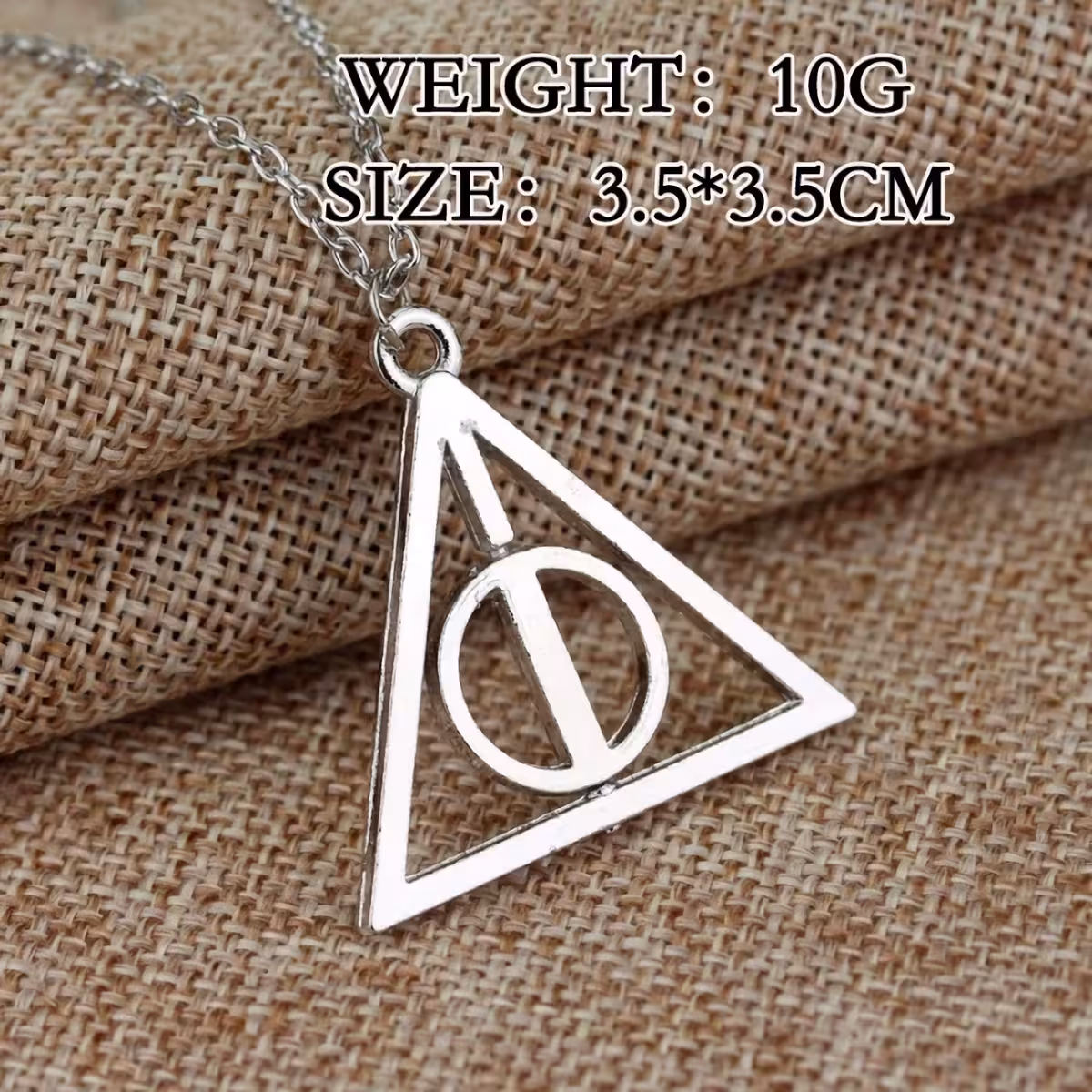 Harry Potter Deathly Hallows ripats-kaelakee on ikooniline aksessuaar sarja fännidele, kujutades Püha Kolmnurga sümbolit. Valmistatud kvaliteetsest tsingisulamist, see vastupidav medaljon ühendab kaasaegse stiili maagilise temaatikaga, sobides ideaalselt igapäevaseks kandmiseks või kollektsiooni osaks.