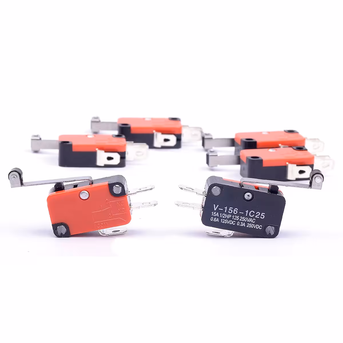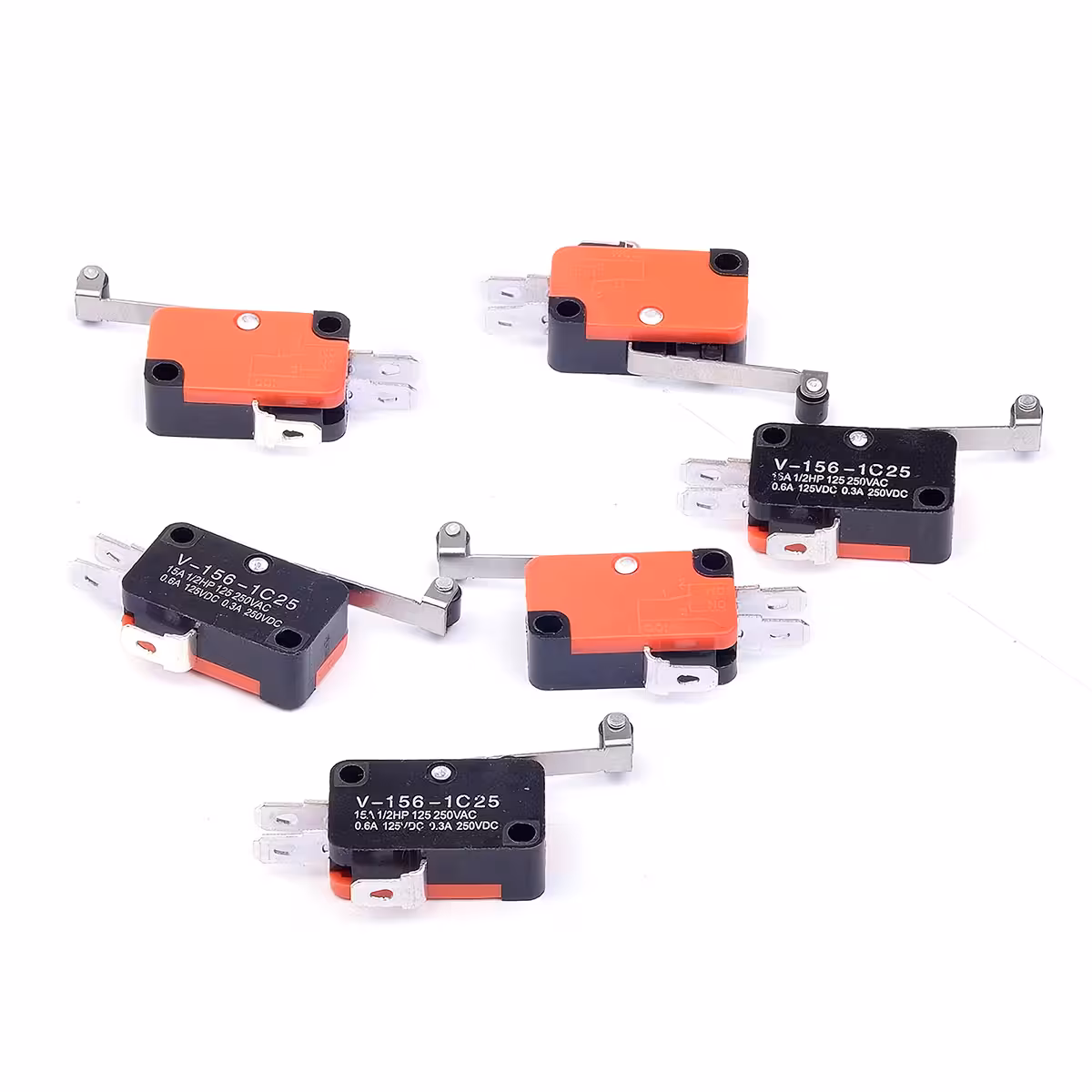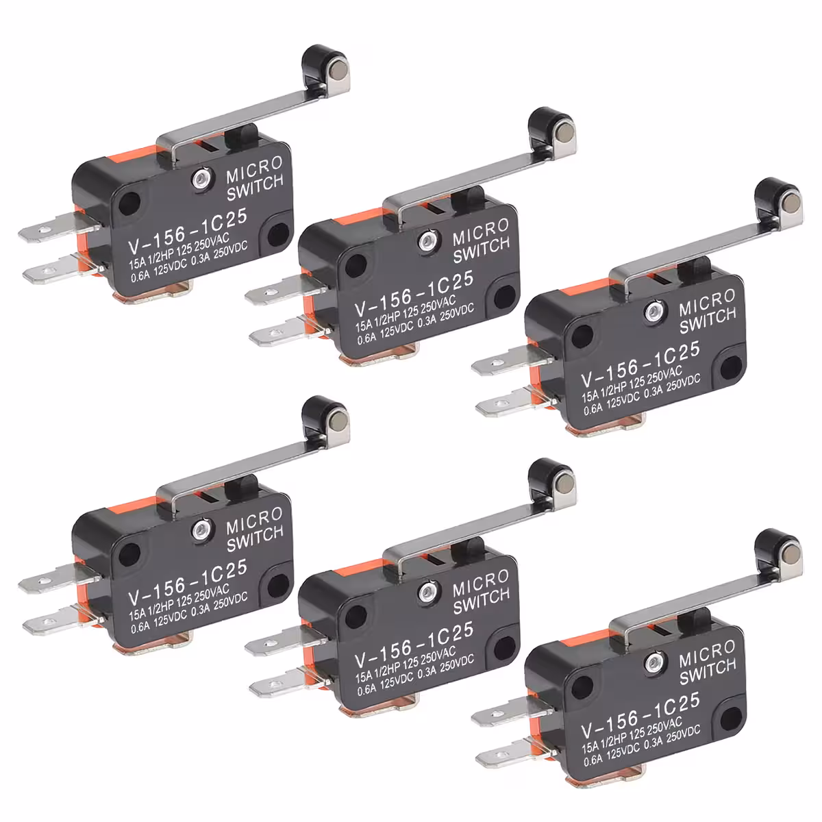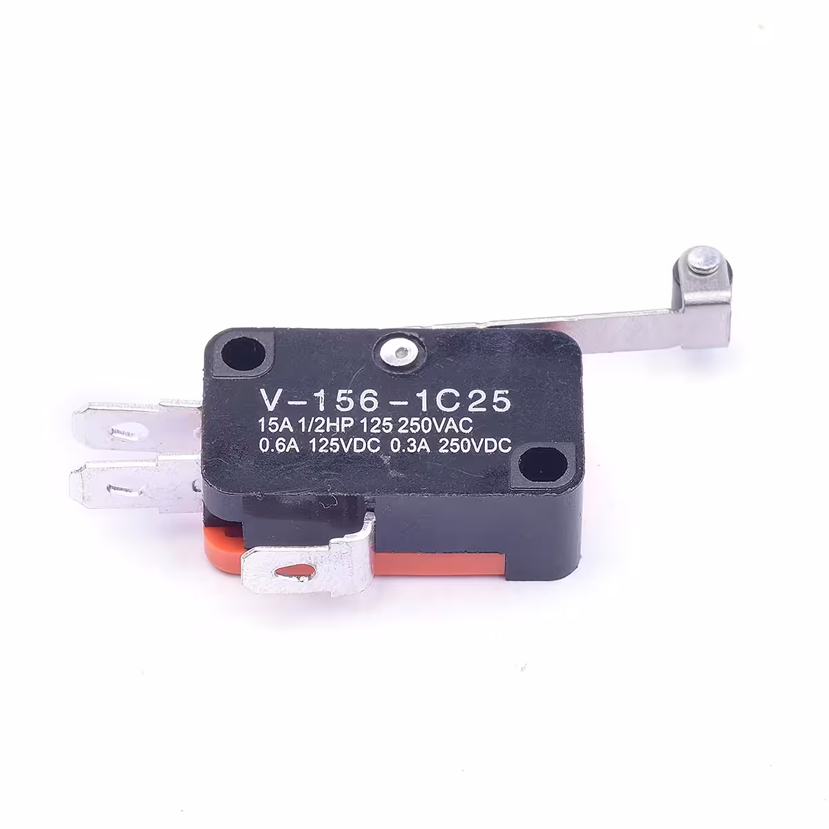 Mudel V-156-1C25 on rulliku, vedru ja pika kangiga liikumispiiraja lüliti, mõeldud AC- ja DC-ahelatele. See tagab kiire reageerimise snap-action mehhanismi kaudu ja sobib ideaalselt tööstuslikeks rakendusteks, automaatseadmeteks ning liikumise juhtimissüsteemideks. Seda tüüpi mikrolülitit kasutatakse mehaaniliste komponentide asendi ja liikumispiiride jälgimiseks, andes automaatselt märku nende ületamisest. Tänu tugevale metall- ja plastkonstruktsioonile talub see nõudlikke keskkondi ning tagab stabiilse pikaajalise töö.