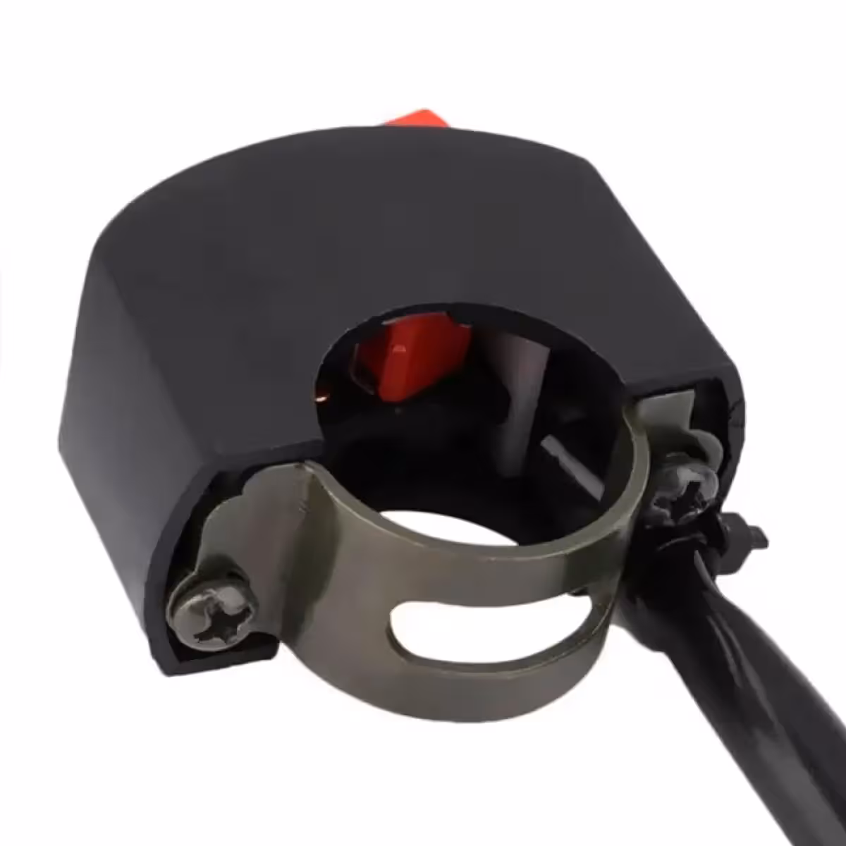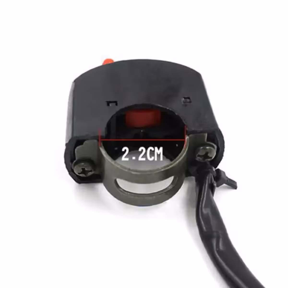 ON/OFF lüliti / nupuga lenksule, ideaalne erinevate elektri- või sisepõlemismootoriga sõidukite jaoks: mootorratas, jalgratas, elektritõukeratas, scooter või ATV. See tugev nupp töötab vahemikus 12V–48V ja kinnitub lihtsalt standardsete 7/8″” (2,2 cm) läbimõõduga lenksudele.