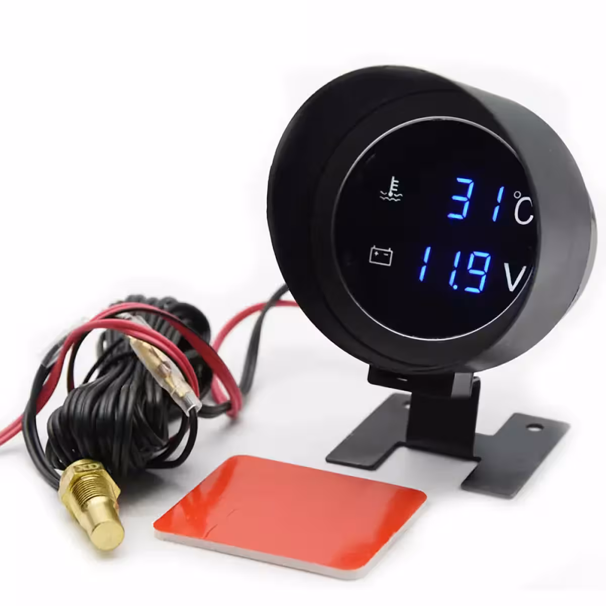 Mootori veetemperatuuri näidik koos sondi ja digitaalse voltmeetriga – auto, traktor, 12V–24V